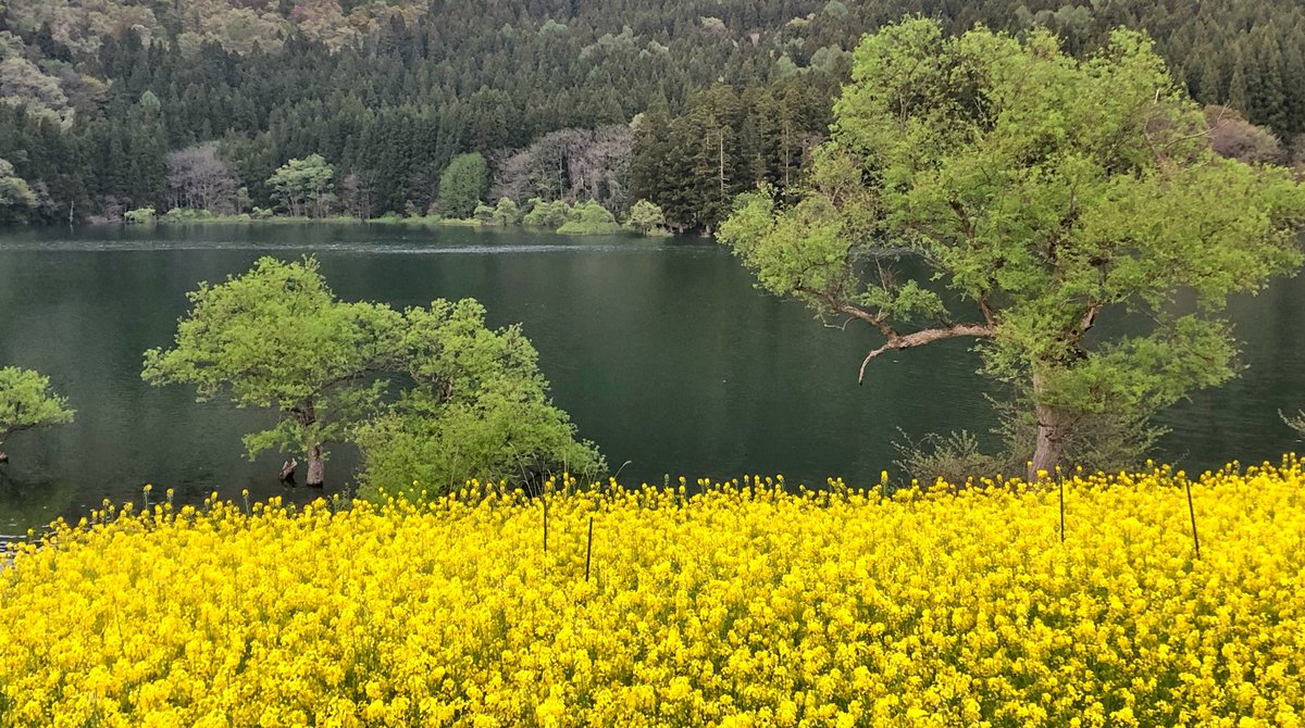 北竜湖畔に広がる菜の花畑。 湖の青、山の緑とのコントラストが見事です。 所在地 飯山市瑞穂北竜湖 MAP TEL FAX北竜湖(ほくりゅうこ)は、長野県 飯山市にある湖。 周囲を走る断層と、火山の爆発によって出来たくぼみに水が溜まって出来た天然湖である。 古くは北竜池、早乙女池と呼ばれた。豪雪地帯にあり周囲24ヘクタールほどの面積から雪解け水や雨水を集め、春は満々と水を湛えている。北竜湖の菜の花と新緑が見頃です! (5月17日 撮影) #信州 #菜の花 #新緑 #湖